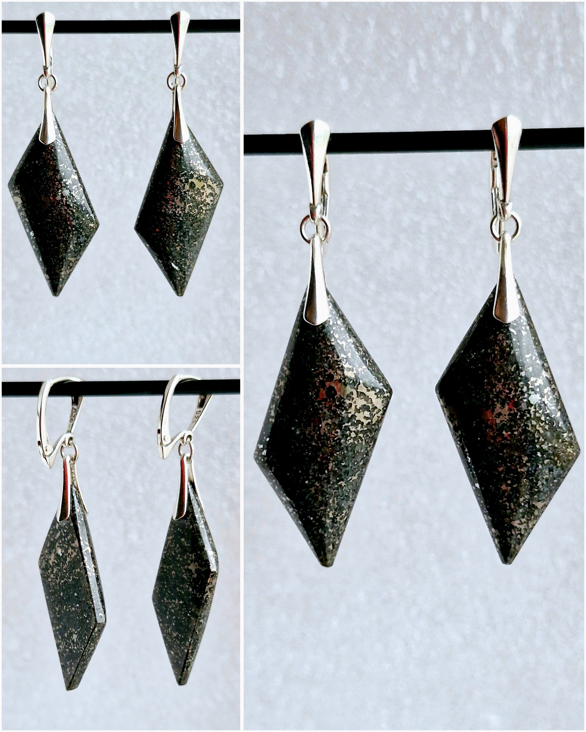 Rotas tiek izgatavotas tikai un vienīgi no Latvijā atrastajiem pusdārgakmeņiem, minerāliem vai iežiem! Akmenim ir dabīgais slīpējums. Visām mūsu rotām ir individuāls dizains. Šiem auskariem ir rūpnieciski izgatavots sudrabs ar 925 provi.
