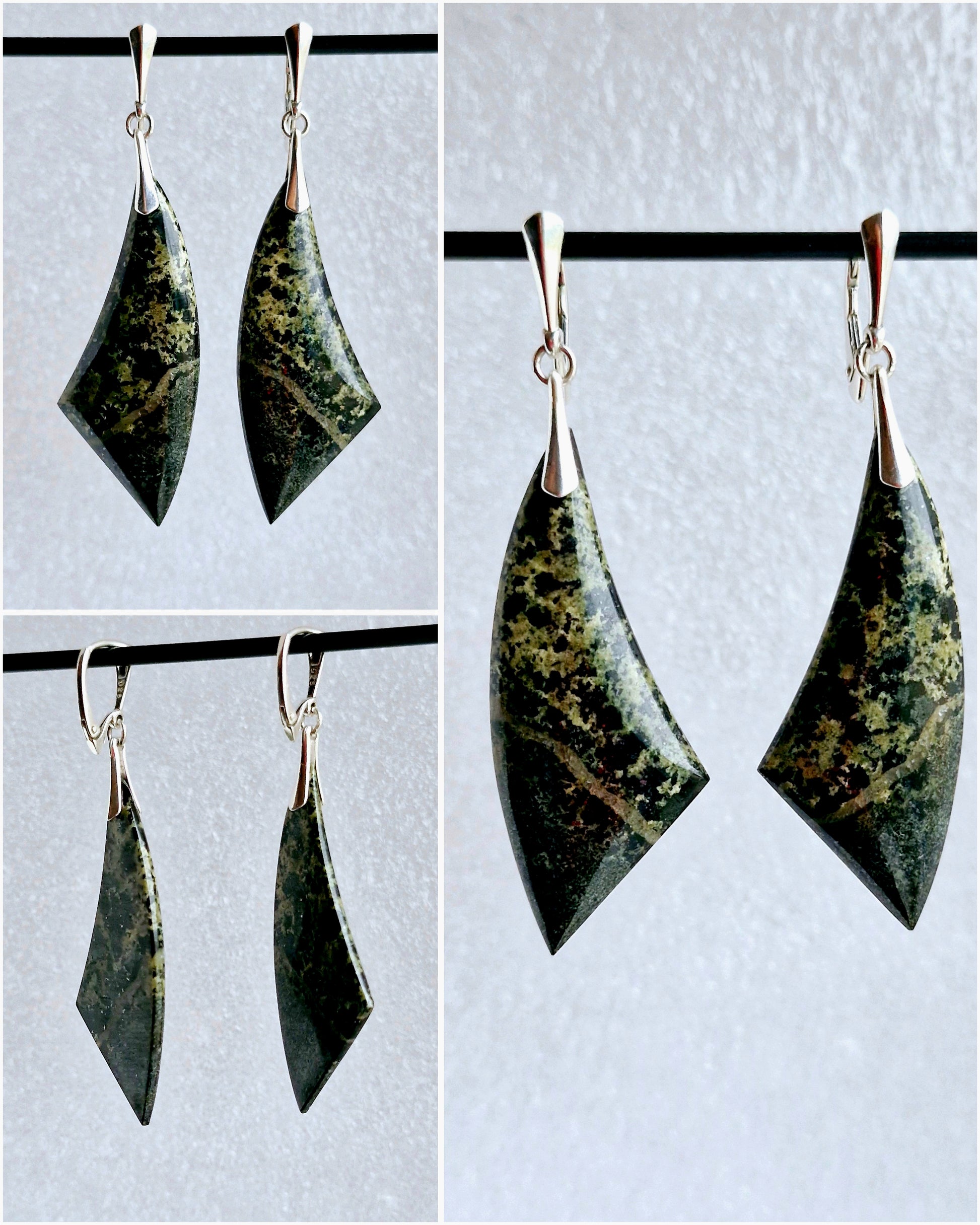 Sudraba (925 prove) auskari ar serpentinītu (serpentinite)